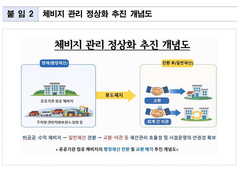 - 공공기관 무상사용 체비지 교환·이관 등으로 체계적 정비 추진…재정운영 효율 제고
